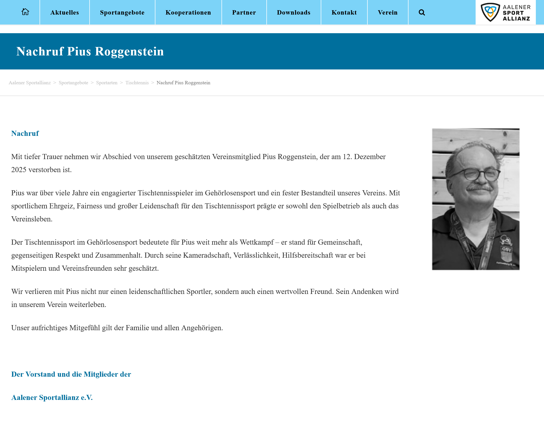 verlieren wir nicht nur einen leidenschaftlichen Sportler, sondern auch einen Tischtenniskassierer und einen wunderbaren Freund.